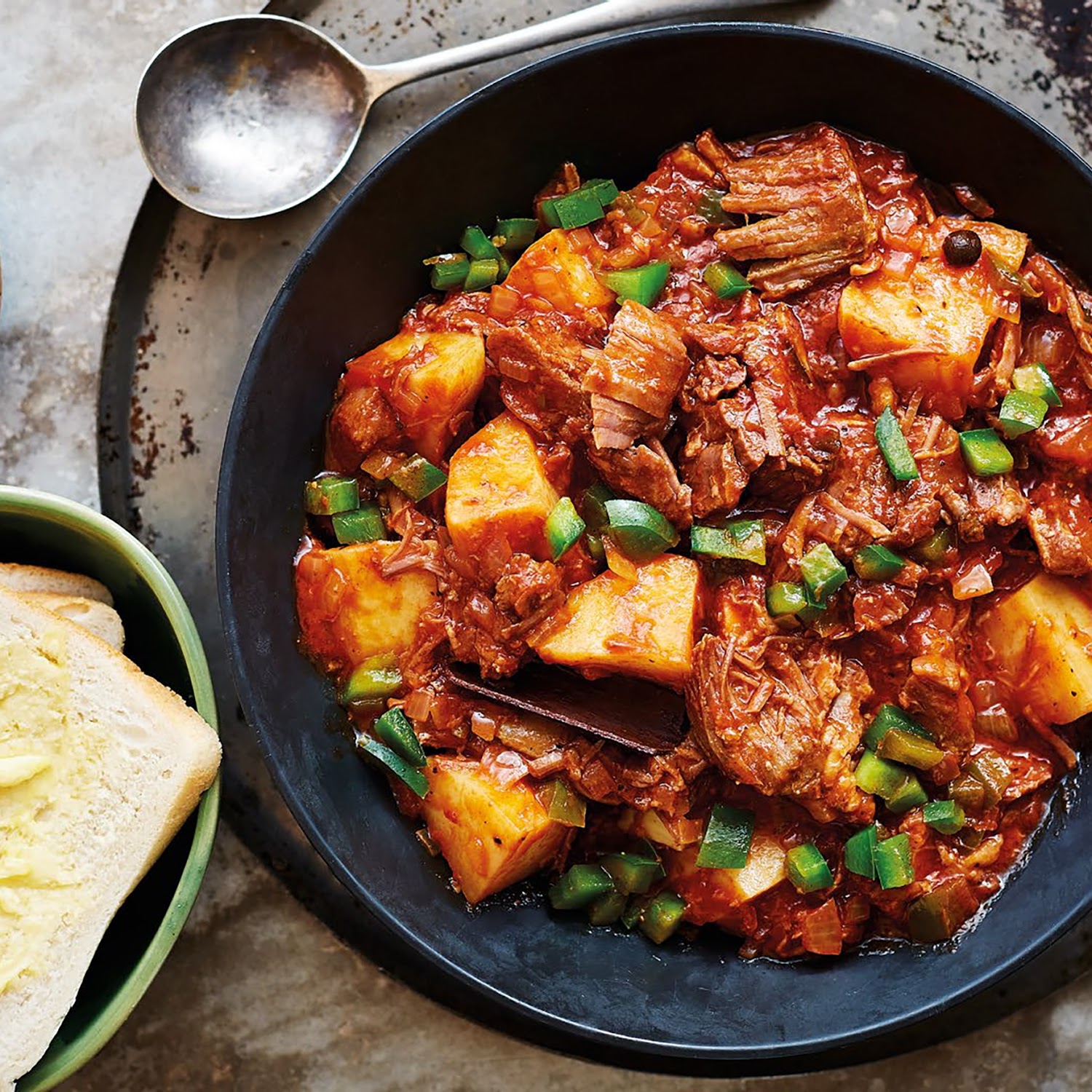 Tomato bredie is a stew of mutton and tomatoes with spices that taste great on the tongue. When ripe, the tomato brandie has a thick texture. Very fitting paired with warm rice.